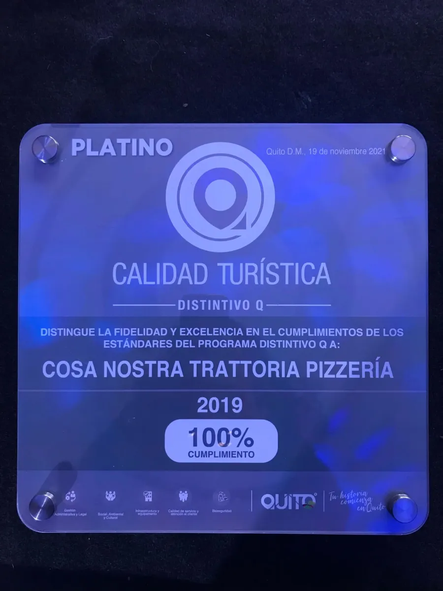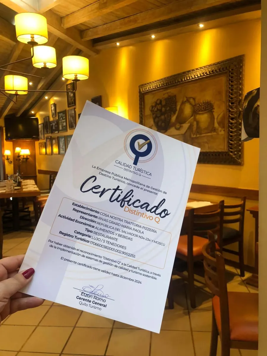 Cosa-Nostra-Trattoria-Pizzeria-Certificado-Calida-Turistica-Distintivo-Q