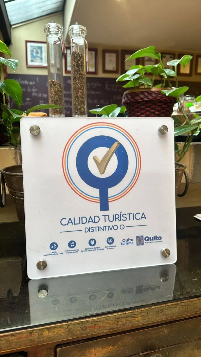 El Distintivo Q es un sello de calidad que otorga el Municipio de Quito, a través de Quito Turismo, a los establecimientos turísticos que cumplen con los principios de sostenibilidad y calidad. A lo largo de todos estos años, nos hemos visto comprometidos en el cumplimiento de la normativa y así poder contribuir al turismo de nuestra cuidad ofreciendo calidad en los productos y en el servicio, siempre pensando en que nuestra labor y acciones sean amigables con el medio ambiente.