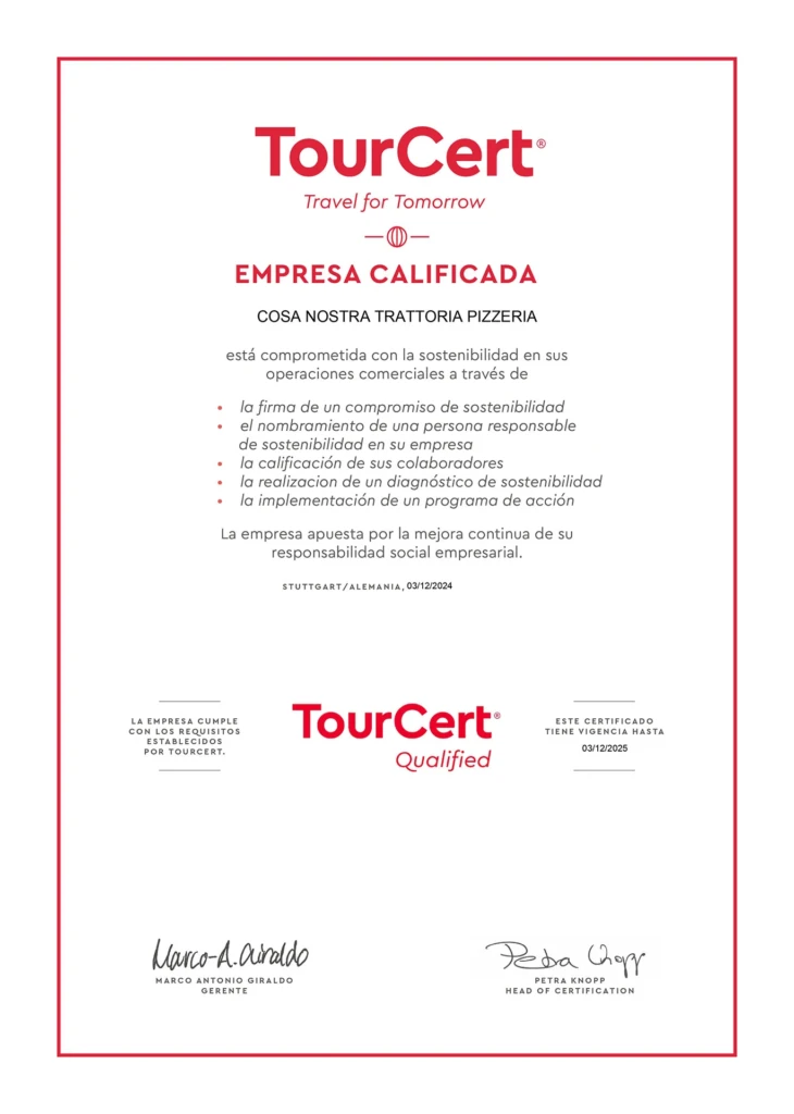 Cosa-Nostra-Trattoria-Pizzeria-Certificado-TourCert-Qualified